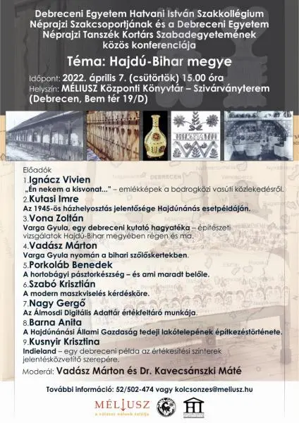 Debreceni Egyetem Hatvani István Szakkollégium Néprajzi Szakcsoportjának és a Debreceni Egyetem Néprajzi Tanszék Kortárs Szabadegyetemének közös konferenciája