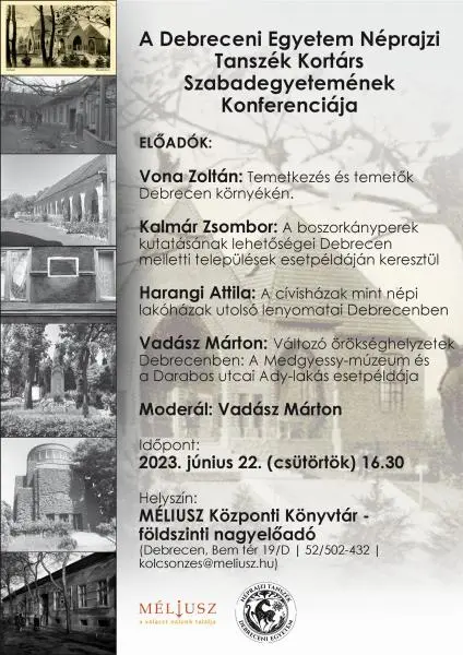 2023. június 22-én a Néprajzi Tanszék Kortárs Szabadegyetemének adott otthont a Méliusz Juhász Péter Könyvtár. A konferencián Tanszékünk Debrecent is kutató hallgatói számoltak be legújabb eredményeikről.