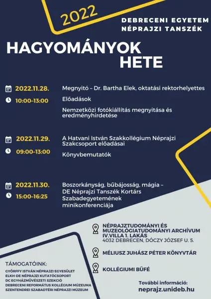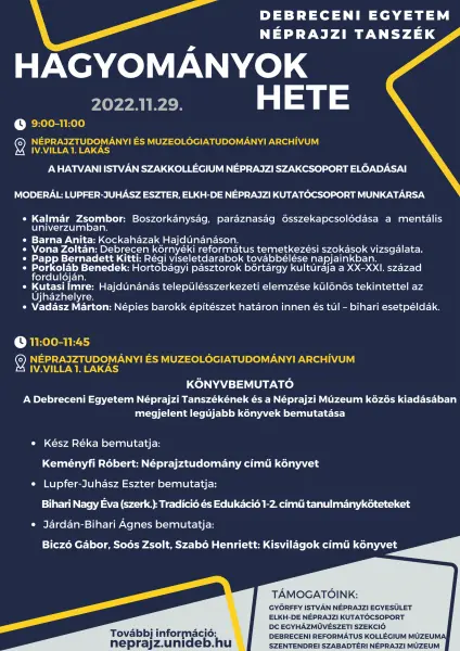 Hagyományok Hete a DE Néprajzi Tanszéken | Néprajztudományi és Muzeológiai Intézet