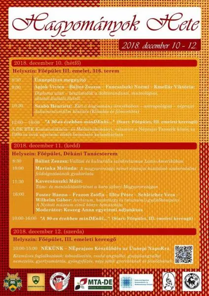 2018. 12. 10., h – 09:00 - 2018. 12. 12., sze – 16:00 Programajánló egyetemi hallgatóinknak. Legutóbbi frissítés: 2023. 09. 05. 15:38